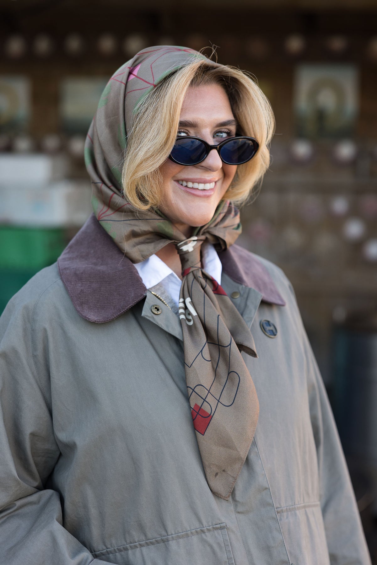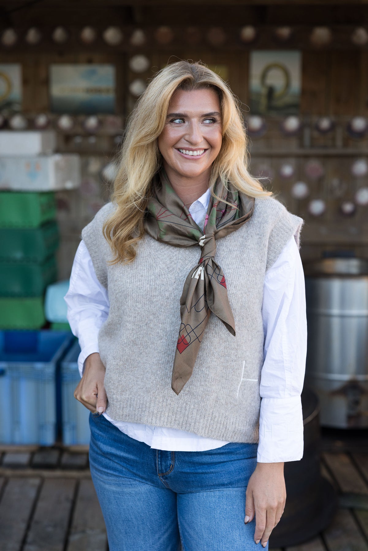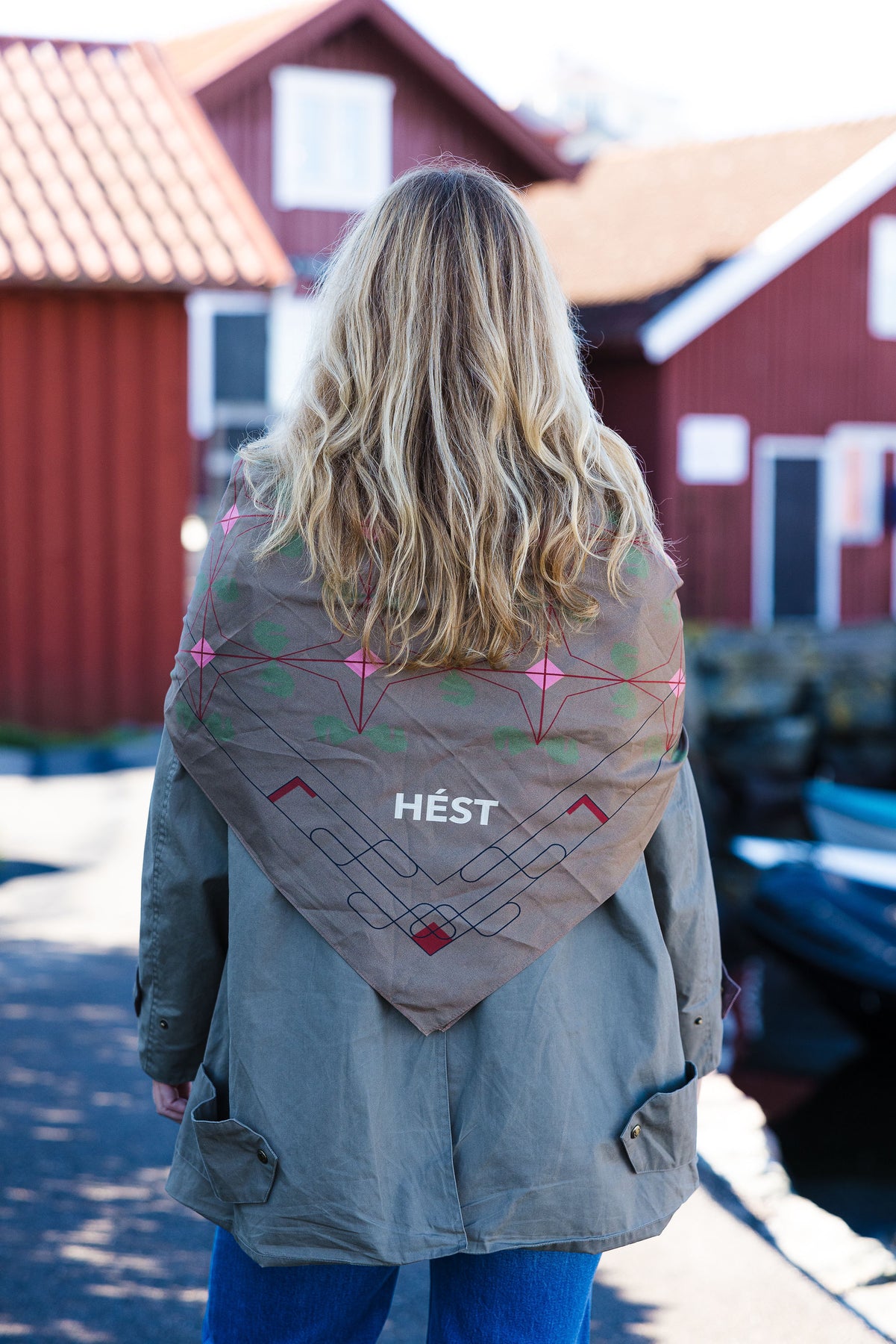 Silkes scarf från Hést i ett fint mönster. Perfekt för att lyfta en outfit! Scarfsen du kan använda på många sett! Tips som bälte, linne, tuff huvudbonad eller snygg scarfs.