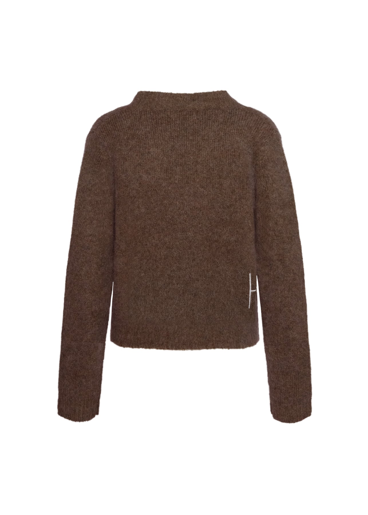 En långärmad, stickad tröja från Hést. Modellen är åt det tajtare hållet med en v-ringad hals.