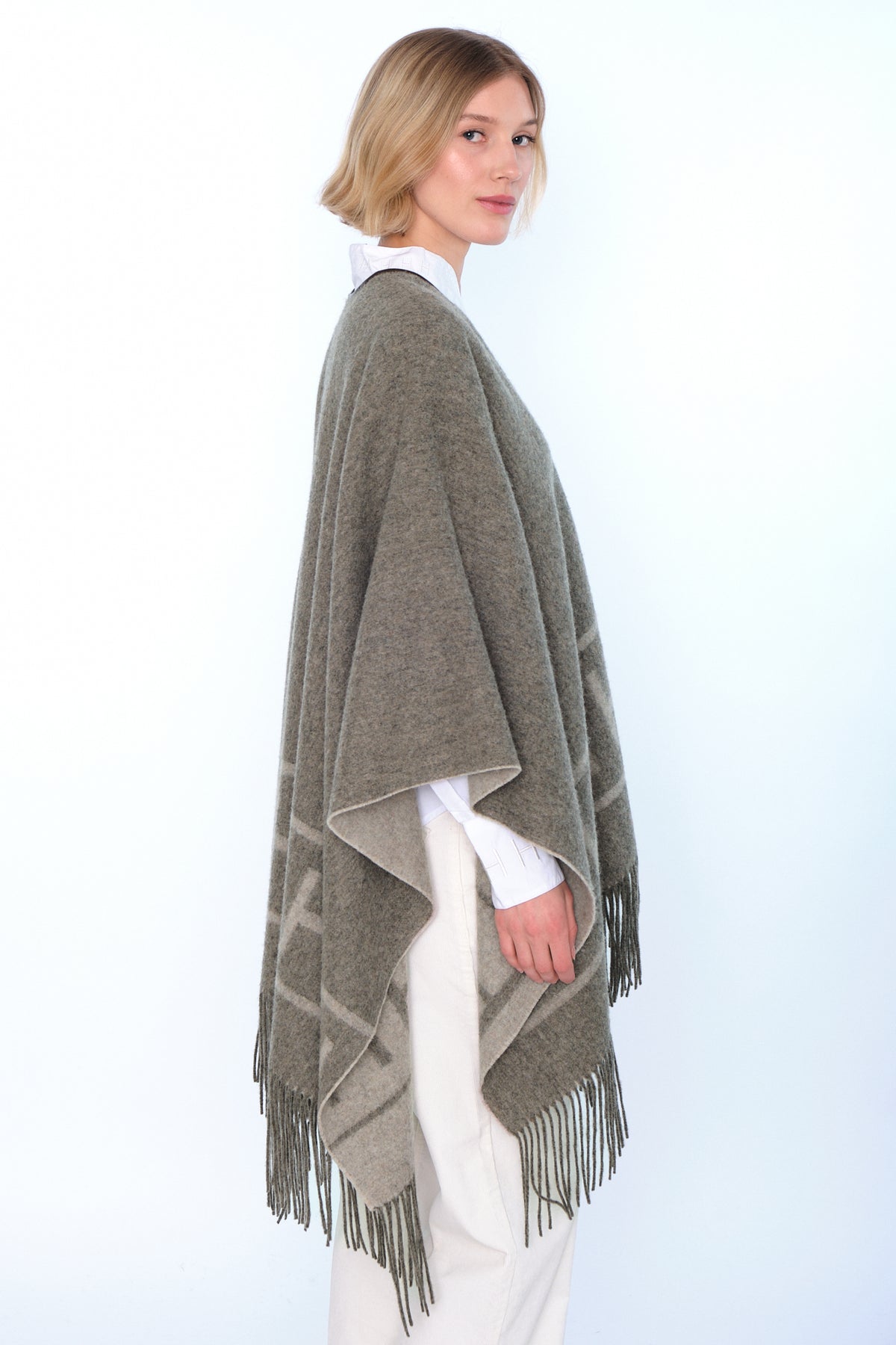 En snygg shawl från Hést. Shawlen har en läder kant samt fransar nedtill.